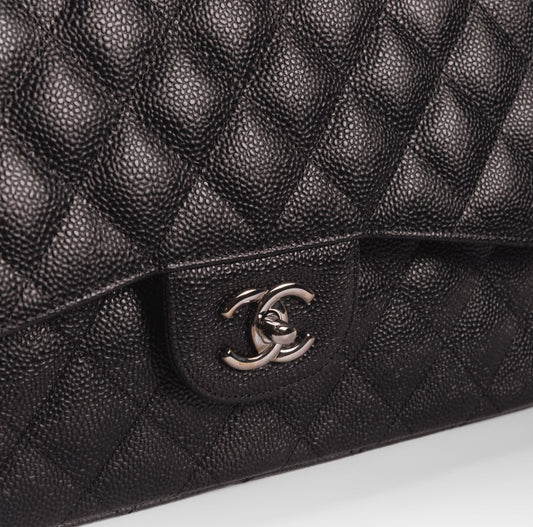CHANEL - BAG TIMELESS LARGE BLACK CAVIAR LEATHER SILVER HARDWARE
