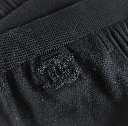 CHANEL - TOP RIBBED BLACK COTTON WITH LOGO DETAIL SIZE 38 FR