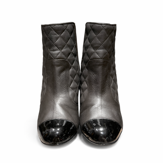 CHANEL - ANKLE BOOTS QUILTED DARK BROWN LEATHER SIZE 38,5 EU