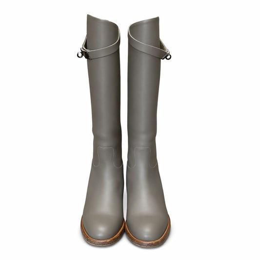 HERMÈS - BOOTS JUMPING LEATHER ÉTOUPE SILVER HARDWARE SIZE 37 EU