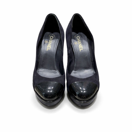 CHANEL - PUMPS BLUE NAVY SUEDE AND PATENT SIZE 40,5 EU