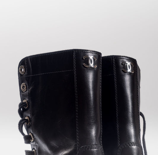 CHANEL - ANKLE BOOTS BLACK SMOOTH LEATHER SIZE 39 EU
