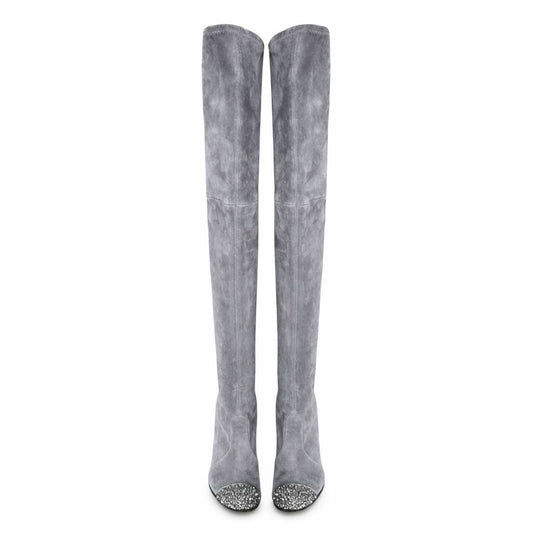 CASADEI - HIGH BOOTS GREY SUEDE WITH SILVER STUDDED TOE SIZE 35 EU