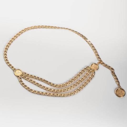 CHANEL - *RARE* BELT TRIPLE CHAIN MEDAILLION GOLD TONE
