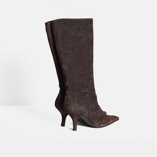 PRADA - HIGH BOOTS BROWN OSTRICH LEATHER SIZE 37 EU