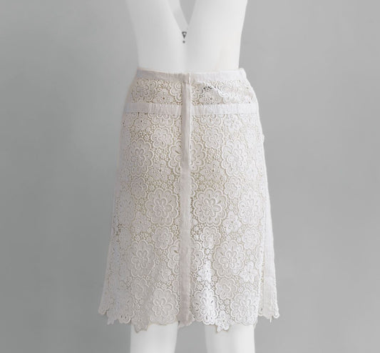 CHANEL - SKIRT MIDI FLORAL WHITE LACE SIZE 38 FR