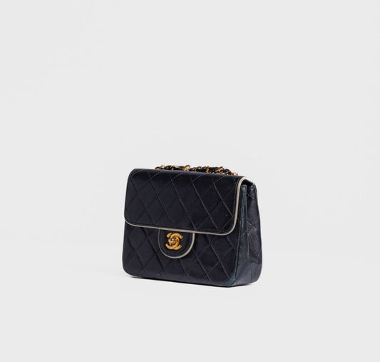 CHANEL - BAG MINI TIMELESS LEATHER NAVY BLUE WHITE TRIM