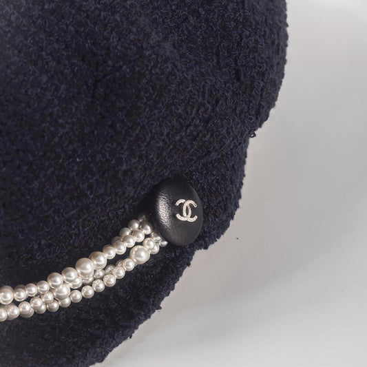 CHANEL - HAT TWEED BLUE WITH PEARLS SIZE S