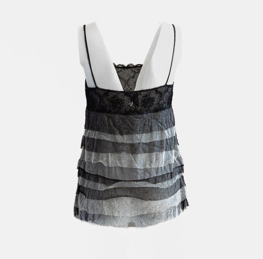 CHANEL - TOP BLACK AND WHITE SILK MESH SIZE 38 FR