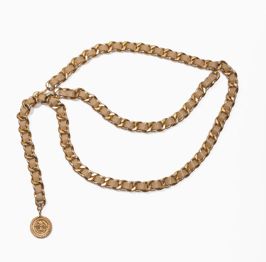CHANEL - BELT CHAIN DOUBLE TOUR WITH LEATHER AND COIN MÉDAILLON