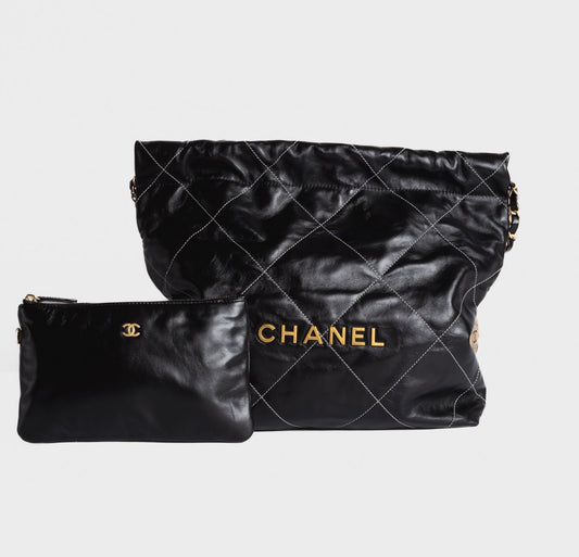 CHANEL - BAG SMALL CHANEL 22 IN SHINY LEATHER BRUSHED GOLD TONE HARDWARE