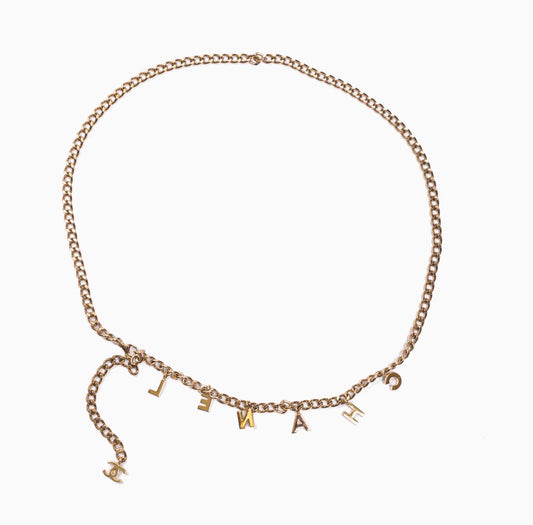 CHANEL - BELT GOLD-TONE CHAIN WITH CHANEL LETTERING CHARM