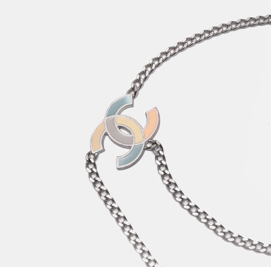 CHANEL - BELT CHAON SILVER-TONE MULTICOLOR ENAMEL CC CHARM