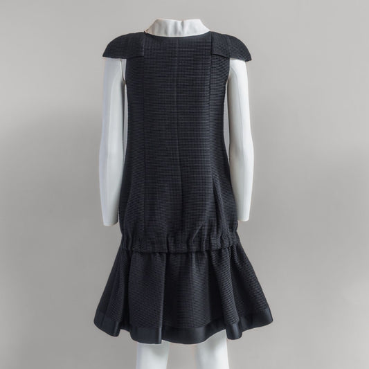 CHANEL - DRESS MINI BLACK WHITE COLLAR BOW SIZE 34 FR