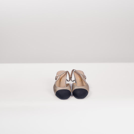 CHANEL - SLINGBACK GOLD LEATHER WITH BLACK TOE SIZE 37,5 EU