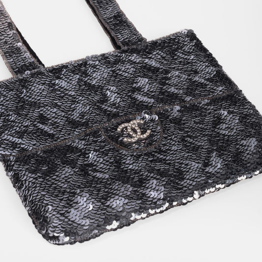 CHANEL - POCHETTE BAG SEQUIN SILVER MINI