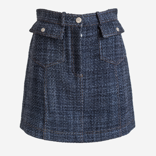 CHANEL - SET DOUBLE-BREASTED BLAZER AND SKIRT NAVY BLUE