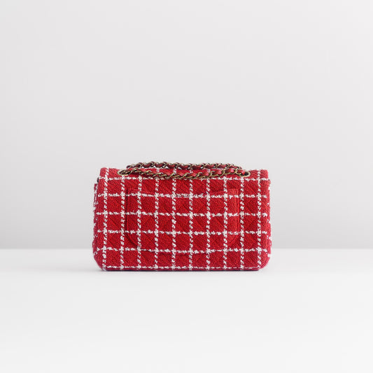 CHANEL - TIMELESS BAG TWEED QUILTED MEDIUM DOUBLE FLAP RED & WHITE