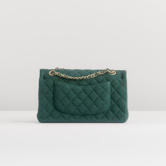 CHANEL - TIMELESS BAG MEDIUM DOUBLE FLAP GREEN QUILTED JERSEY