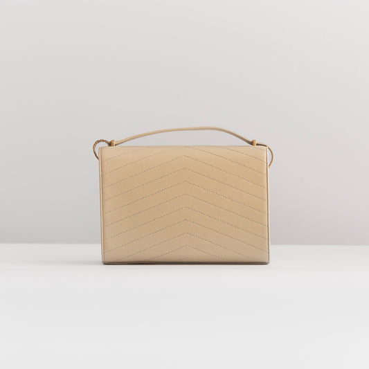 CHANEL - BAG CALFSKIN CHEVRON QUILTED FLAP IN BEIGE