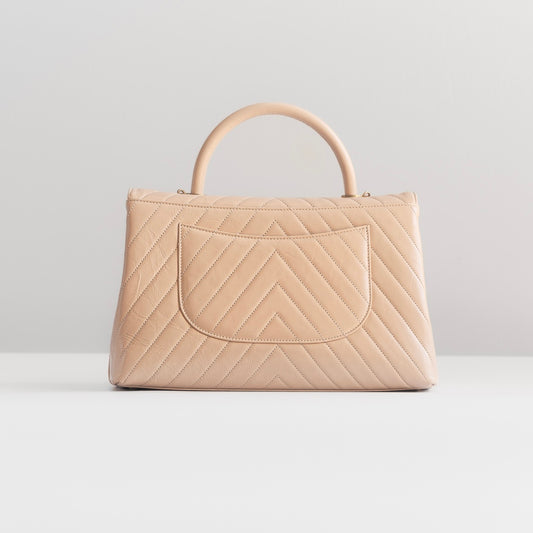 CHANEL - HANDBAG CHEVRON COCO HANDLE BEIGE LEATHER