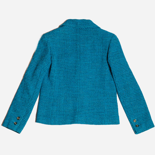 CHANEL - BLAZER TURQUOISE BLUE TWEED SIZE 38 FR