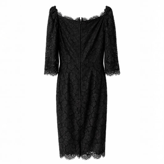 DOLCE & GABBANA - DRESS MIDI BLACK LACE EMBROIDERED PURPLE FLOWERS SIZE 48 IT