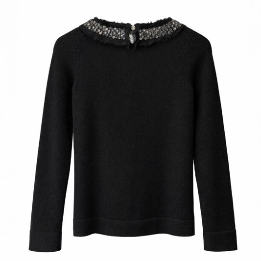 CHANEL - SWEATER BLACK CASHMERE WITH RHINESTONE DETAILS SIZE 34 FR