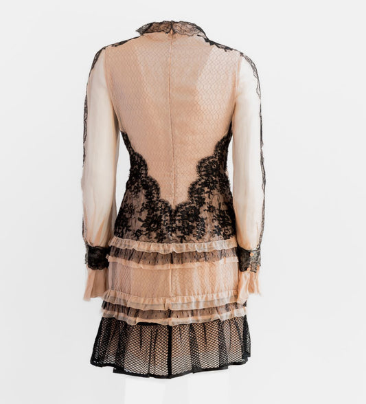 VALENTINO - DRESS MINI LACE BLACK AND PINK SIZE S