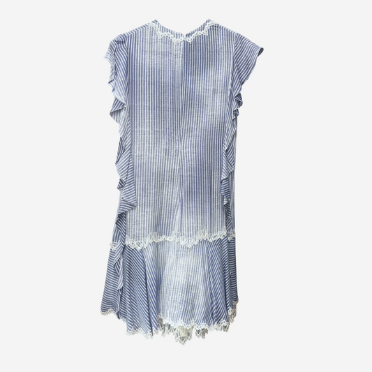 ERMANNO SCERVINO - DRESS BLUE STRIPES AND WHITE LACE DETAILS SIZE 42 IT