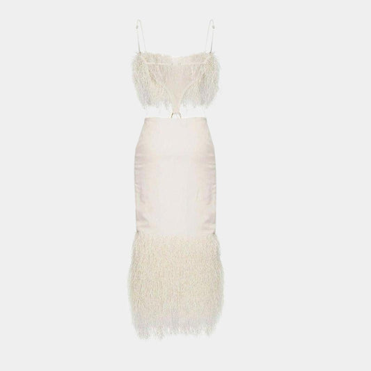 JACQUEMUS - DRESS MIDI FRINGED RAFFIA SIZE 38 FR