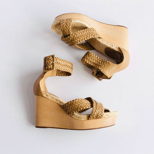 HERMÈS - SANDALS WEDGE IN BROWN BRAIDED LEATHER SIZE 38 EU