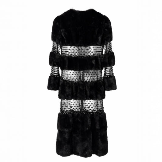 VALENTINO - *RARE* FUR MINK COAT BLACK WITH BEADED INSERT
