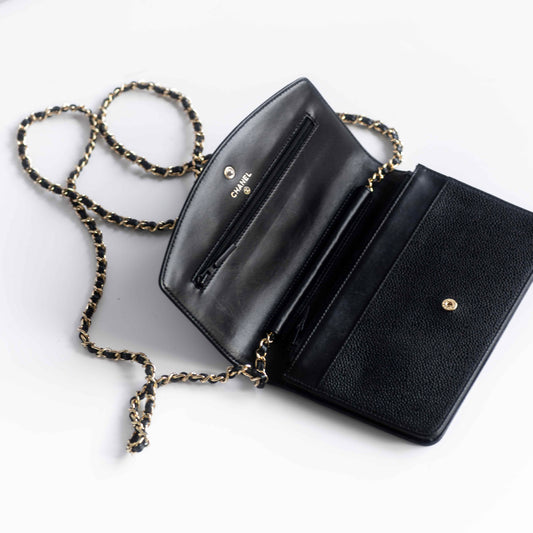 CHANEL - BAG WALLET ON CHAIN BLACK CAVIAR LEATHER