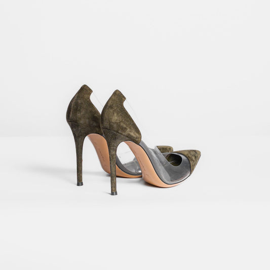 GIANVITO ROSSI - *BRAND NEW* PUMPS KHAKI SUEDE AND TRANSPARENT PVC PLEXI SIZE 39,5 EU