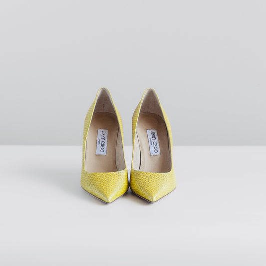 JIMMY CHOO - *BRAND NEW* PUMPS AGNES PEARLISED SNAKESKIN YELLOW LEATHER SIZE 39