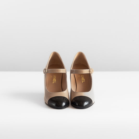 CHANEL - *BRAND NEW* PUMPS MARY JANE BICOLOR BEIGE BLACK SIZE 39 EU