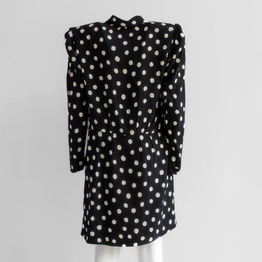SAINT LAURENT - DRESS POLKA DOTS BLACK SIZE 44 FR