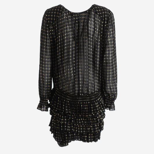 SAINT LAURENT - DRESS MINI RUFFLED GLITTERED FLOCKED SILK-BLEND SIZE L