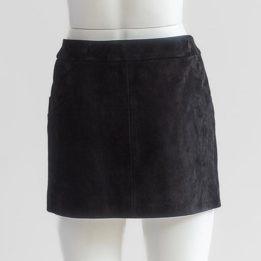 SAINT LAURENT - SKIRT MINI SUÈDE LEATHER STUDDED BLACK SIZE 38 FR