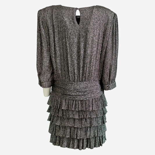 SAINT LAURENT - DRESS MINI RUFFLED SILVER LUREX SIZE 46 FR
