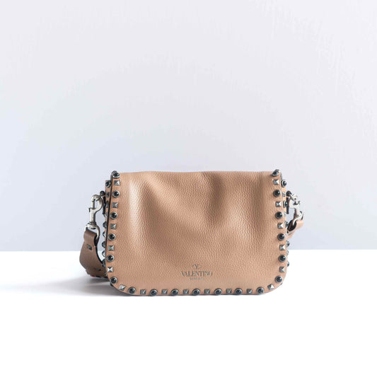 VALENTINO - SHOULDER BAG ROCKSTUD ROLLING BEIGE LEATHER WITH MULTICOLOR STRAP