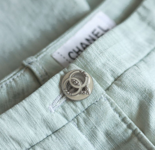 CHANEL - JEANS STRETCH LIGHT BLUE CC LOGO BUTTON SIZE 36 FR