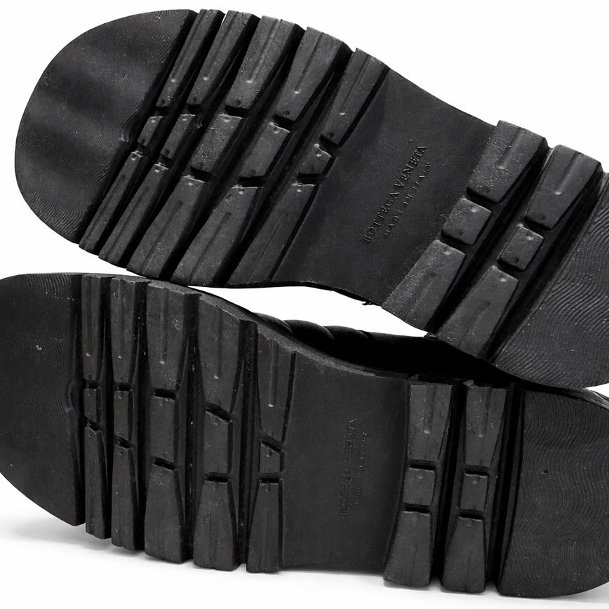 BOTTEGA VENETA – Chevron Lug Mid-Calf Chelsea Boots in Black Calfskin (Size 40)