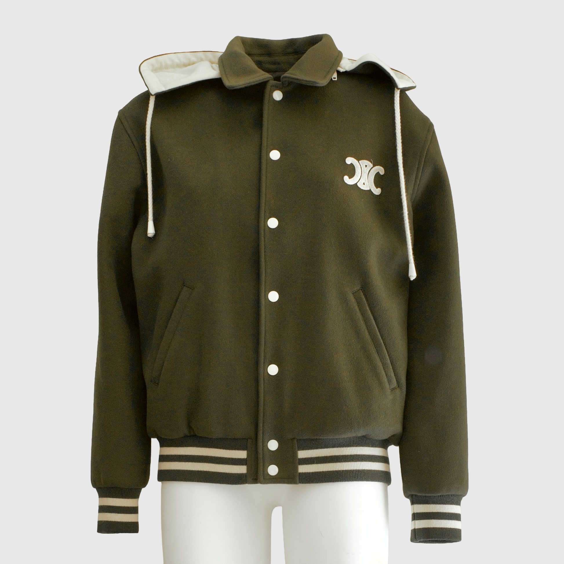 CÉLINE – Green Cashmere Bomber with Hood and White Details