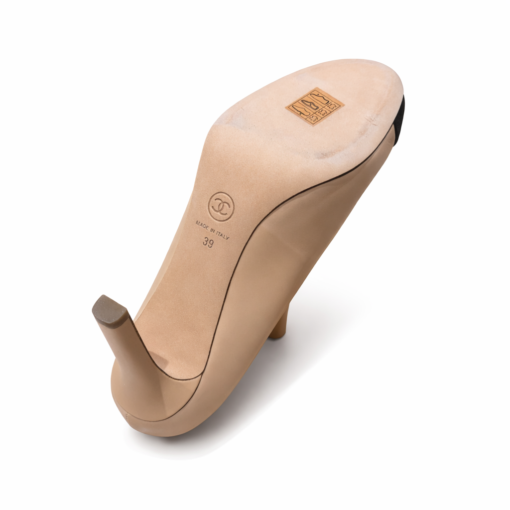 CHANEL – Beige Leather Décolleté Pumps with Black Toe (Size 39 FR)