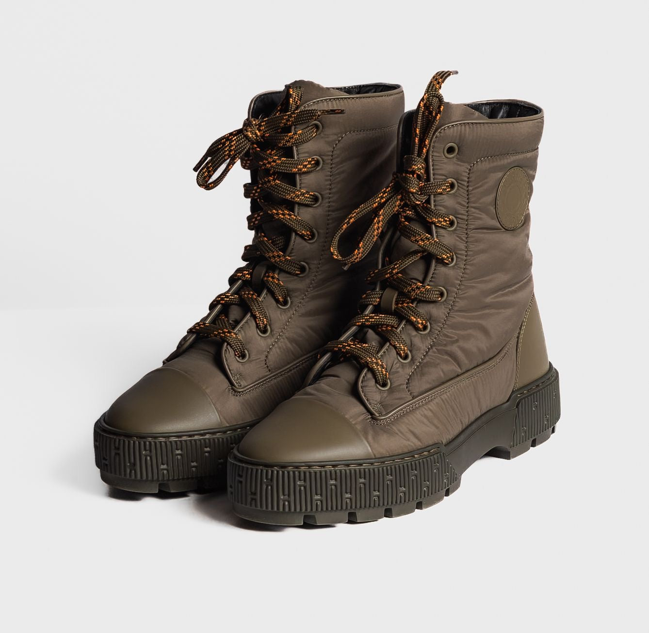 Stylish Hermès Fresh ankle boots crafted from ultra-light parachute fabric and calf leather, designed for ultimate comfort and an outdoor-ready aesthetic. Rubber sole with 4 cm heel.