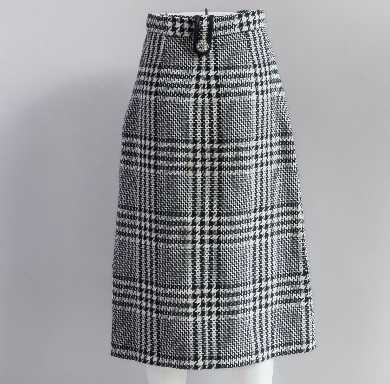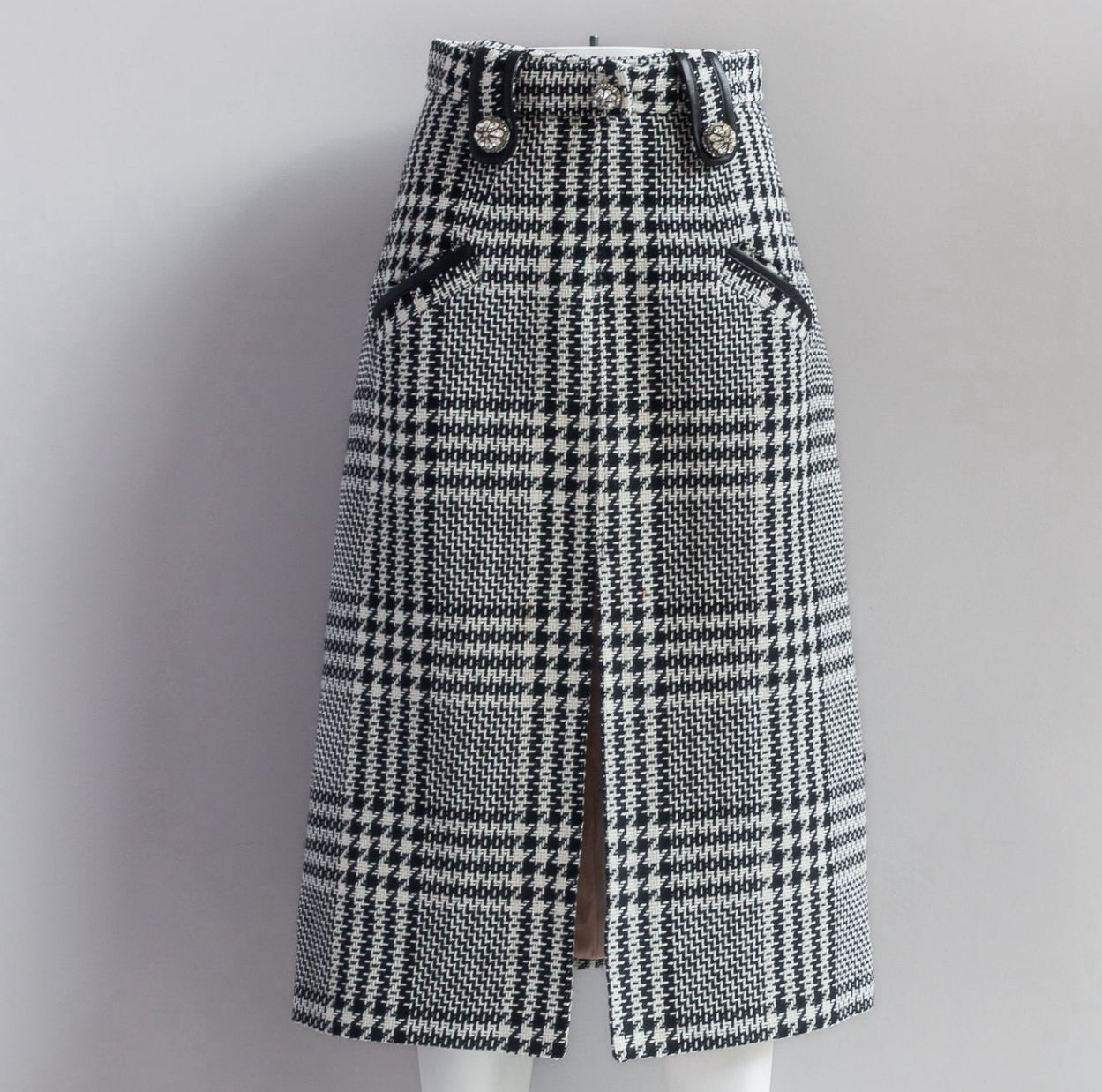 Zuhair Murad – White & Black Tweed Midi Skirt and Vest Set with Leather Trim and Jewel Buttons – Size 38 FR